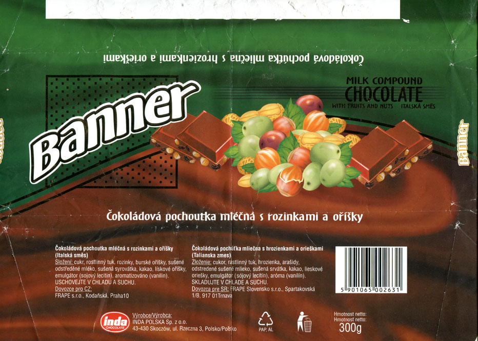 Banner, milk compound chocolate with fruits and nuts, 300g, 04.2003, Inda Polska Sp.z o.o, Skoczow, Poland