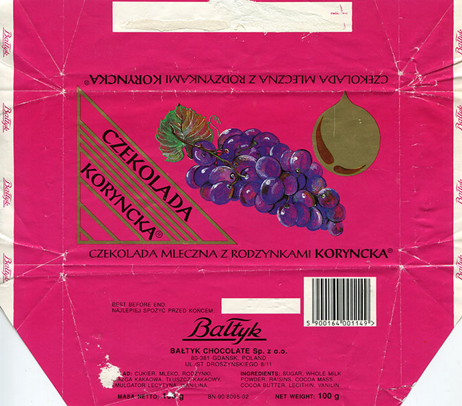 Milk chocolate with raisins, 100g, about 1990, Baltyk Chocolate Sp. z o.o., Gdansk, Poland