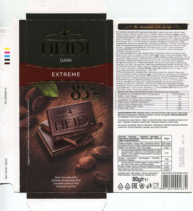 Heidi dark extreme 85% cacao, dark chocolate, 80g, 20.09.2020, Heidi Chocolat S.A, Pantelimon, Romania