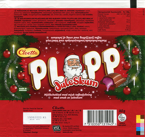 Plopp JuleSkum, milk chocolate with soft toffee filling with strawberry flavour, 80g, 19.06.2021, Cloetta, Malmo, Sweden