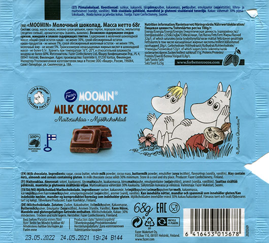 Moomin, milk chocolate, 68g, 23.05.2021, Fazer Confectionery, Helsinki, Finland