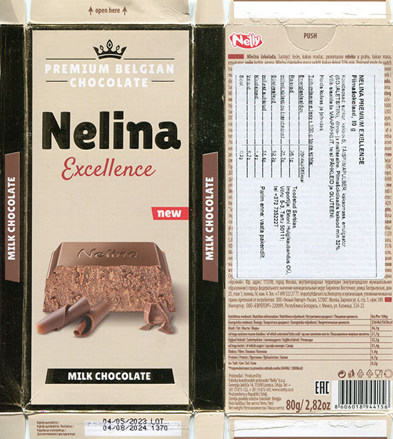 Premium chocolate, Nelina Excellence, milk chocolate, 80g, 04.05.2023, Nelly d.o.o., Loznica, Serbia