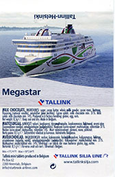 | Additional info about this wrapper: | Starbrook-airlines, Silja Line, Megastar, milk chocolate, 8,5g, n.d., The Belgian Chocolate Group, Herentals, Belgium |