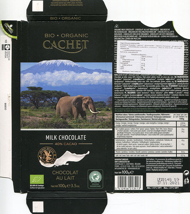 | Additional info about this wrapper: | Cachet, milk chocolate, 100g, 27.11.2020, Kim's chocolates, Tienen, Belgium |