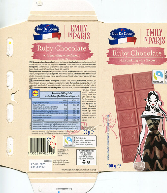 Emily in Paris, ruby chocolate with sparkling wine flavour, 100g, 27.07.2024, Lidl Stiftung Co.KG, Neckarsulm, Germany