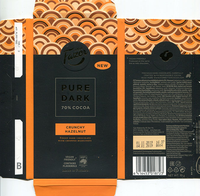 Finest dark chocolate with chopped hazelnuts, 95g, 04.01.2019, Fazer Makeiset OY, Helsinki, Finland