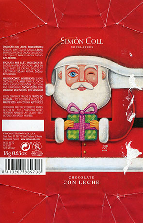 | Additional info about this wrapper: | Milk chocolate, 18g, Chocolates Simon Coll, Barcelona, Spain |