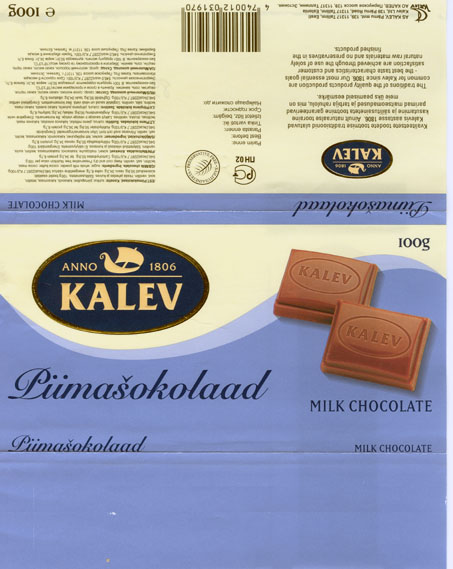 Kalev, milk chocolate , 100g, 07.1999 Kalev, Tallinn, Estonia