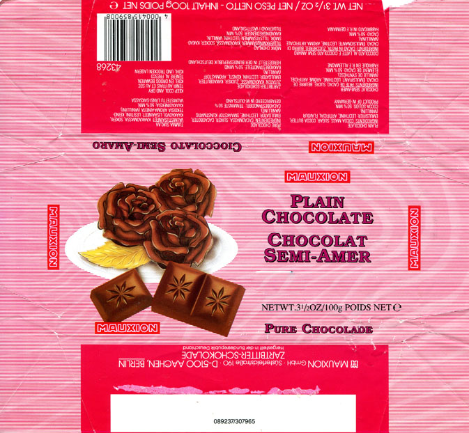 Plain chocolate, 100g, Mauxion GmbH, Berlin, Germany