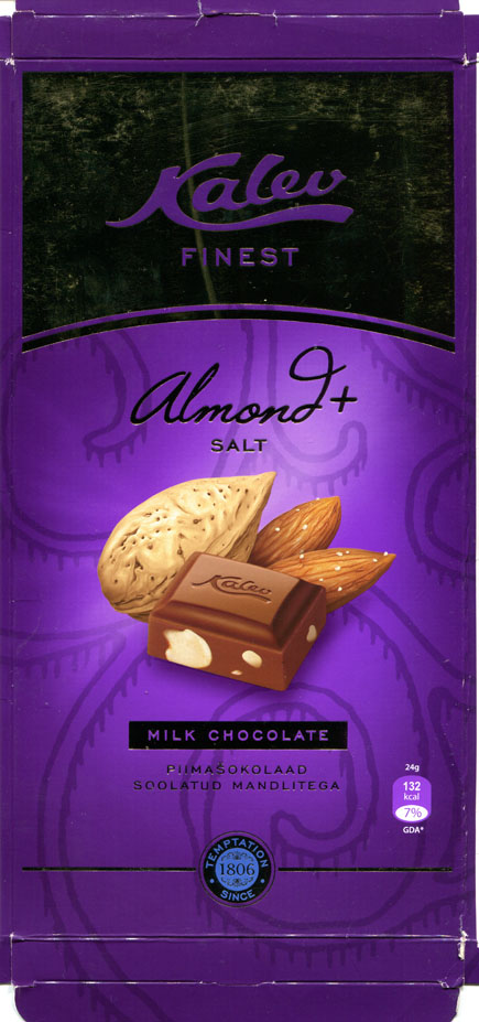 Kalev finest chocolate, milk chocolate with salted almonds, 300g, 19.06.2013, AS Kalev Chocolate Factory, Lehmja, Estonia