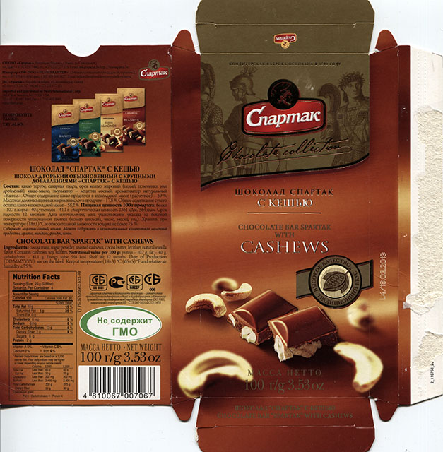 Spartak, chocolate bar with cashew, 100g, 18.02.2013, Spartak JSC, Gomel, Republic of Belarus