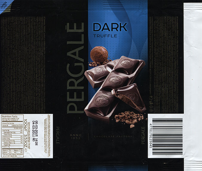 Dark chocolate with truffle filling, 100g, 05.03.2015, Vilniaus Pergale AB, Vilnius, Lithuania
