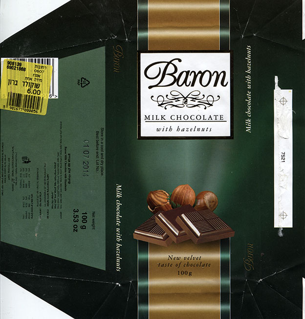 Baron, milk chocolate with hazelnuts, 100g, 01.07.2013, ZWC Millano, Przezmierowo, Poland