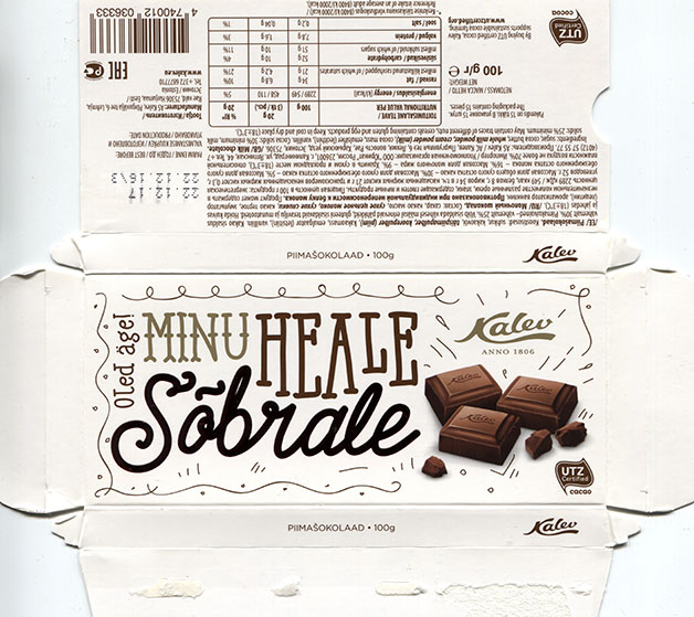Minu heale sobrale, milk chocolate, 100g, 22.12.2016, AS Kalev, Lehmja, Estonia