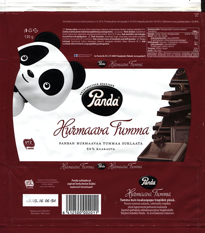 Dark chocolate, 130g, 03.05.2015, Panda chocolate factory, Vaajakoski, Finland