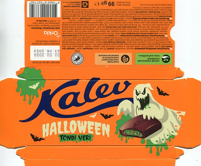 Kalev, Halloween, Tondi veri, milk chocolate with raspberry flavoured milk filling, 99g, 23.08.2023, Orkla Eesti AS, Lehmja, Estonia
