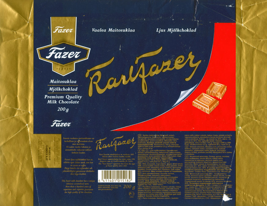 KarlFazer, milk chocolate, 200g, 21.11.2004, Cloetta Fazer, Helsinki, Finland